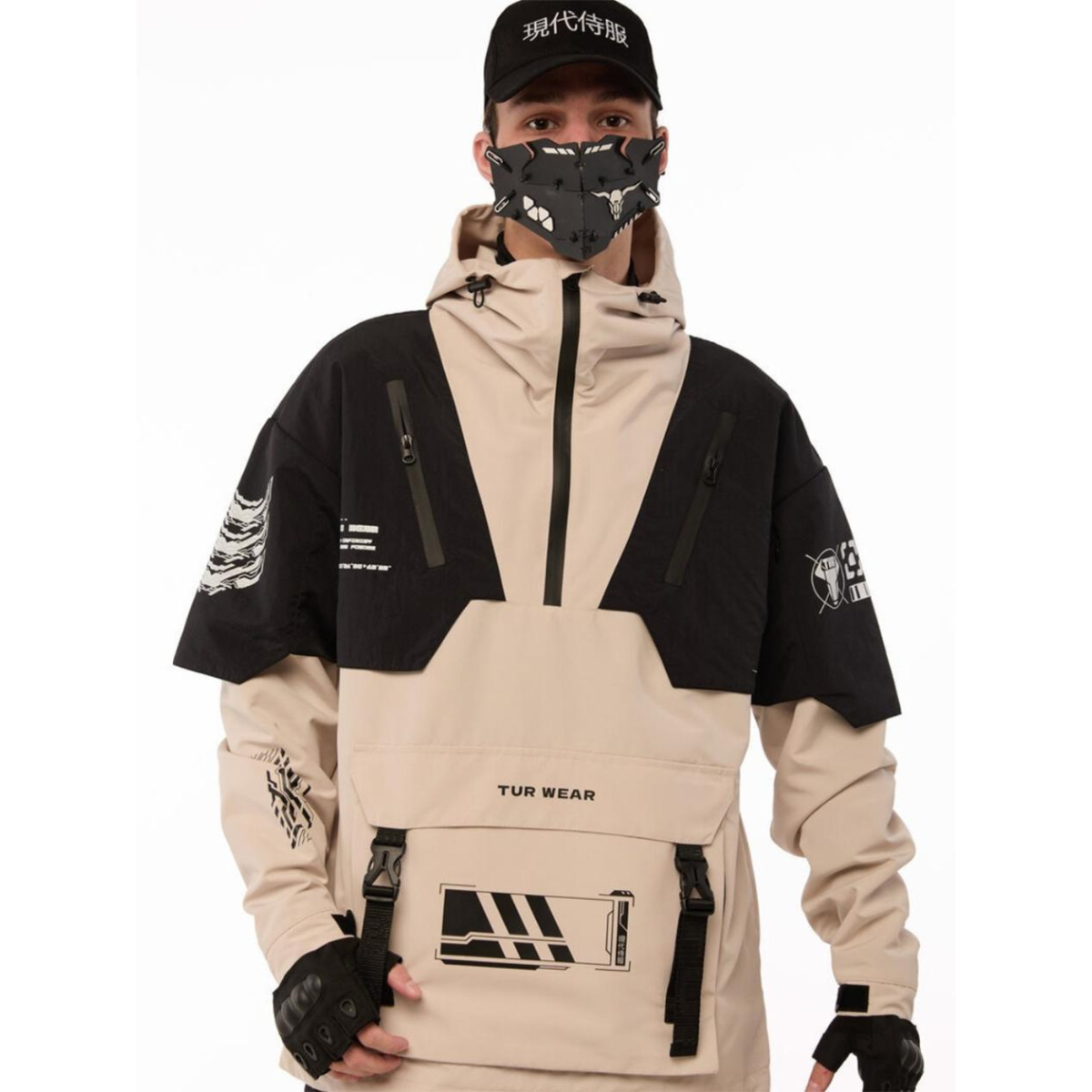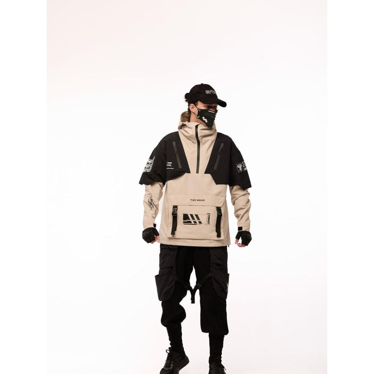 Анорак з принтами “SM-2413“, чорно-бежевий Розміри: S, M, L, XL