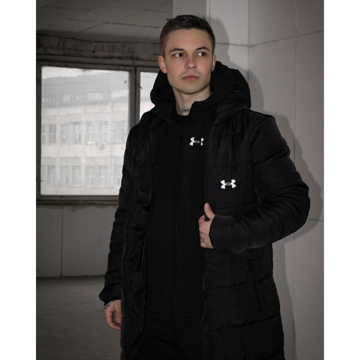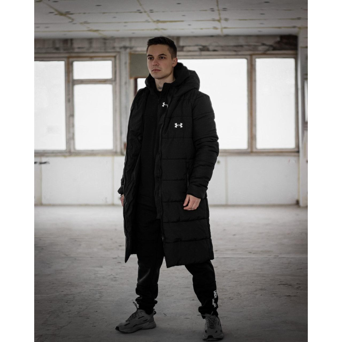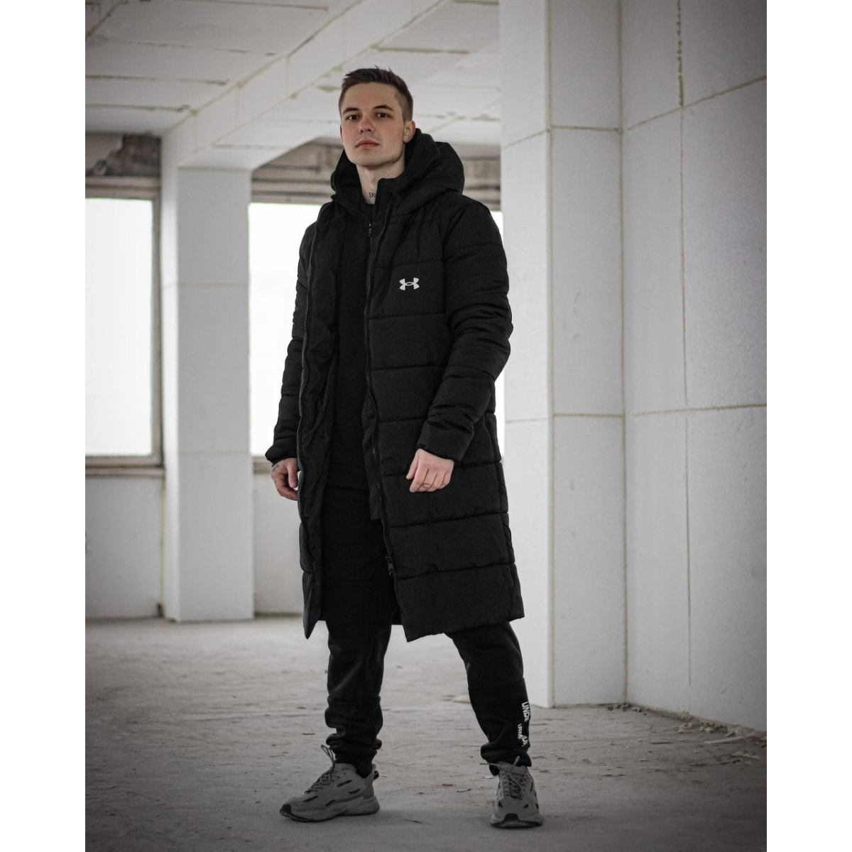 Зимовий подовжений пуховик чорний UA