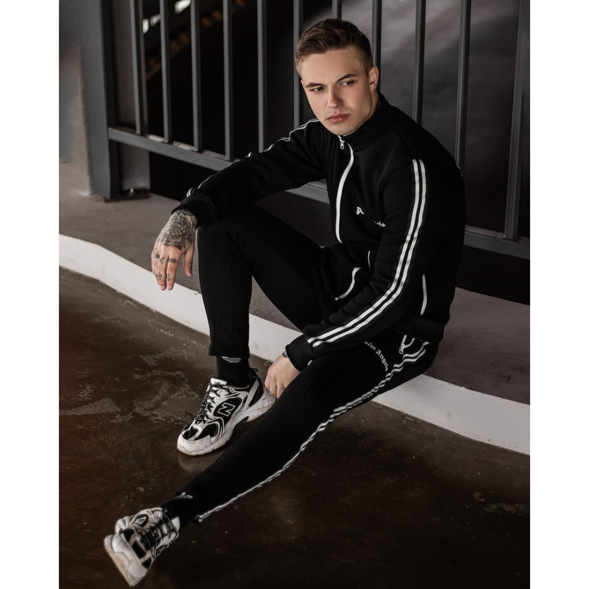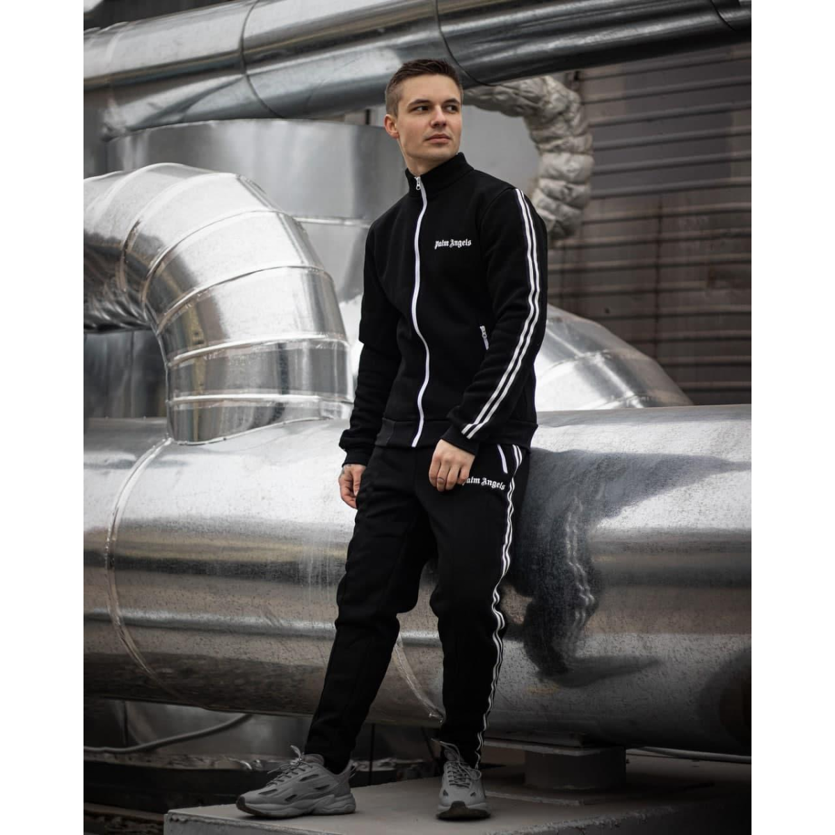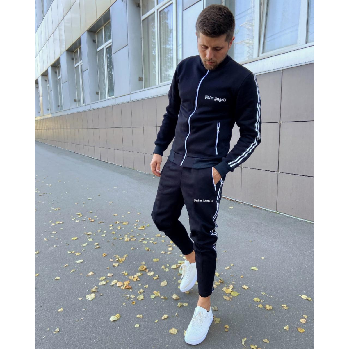 Костюм : кофта+штани тринитка Palm - Lines black